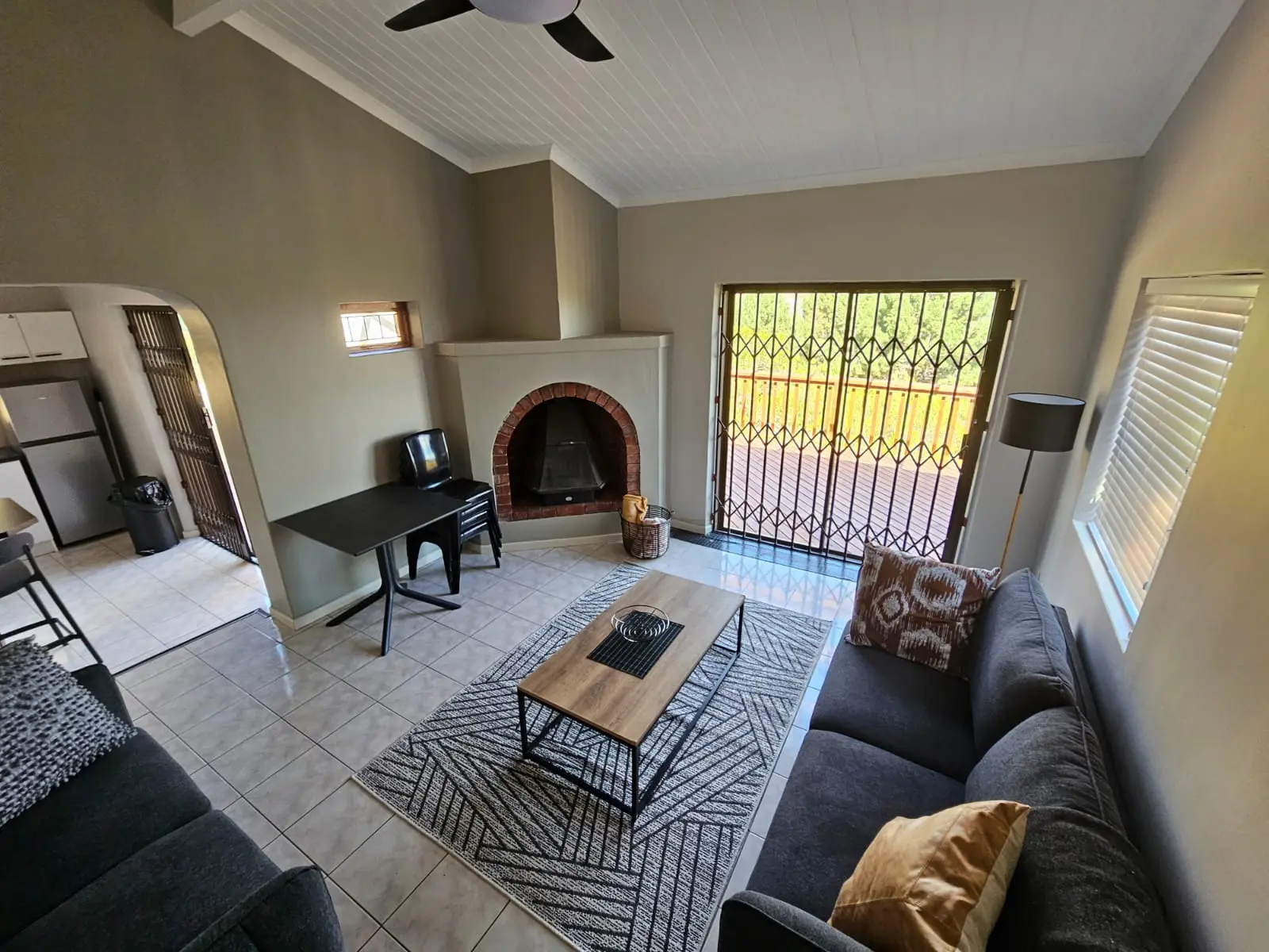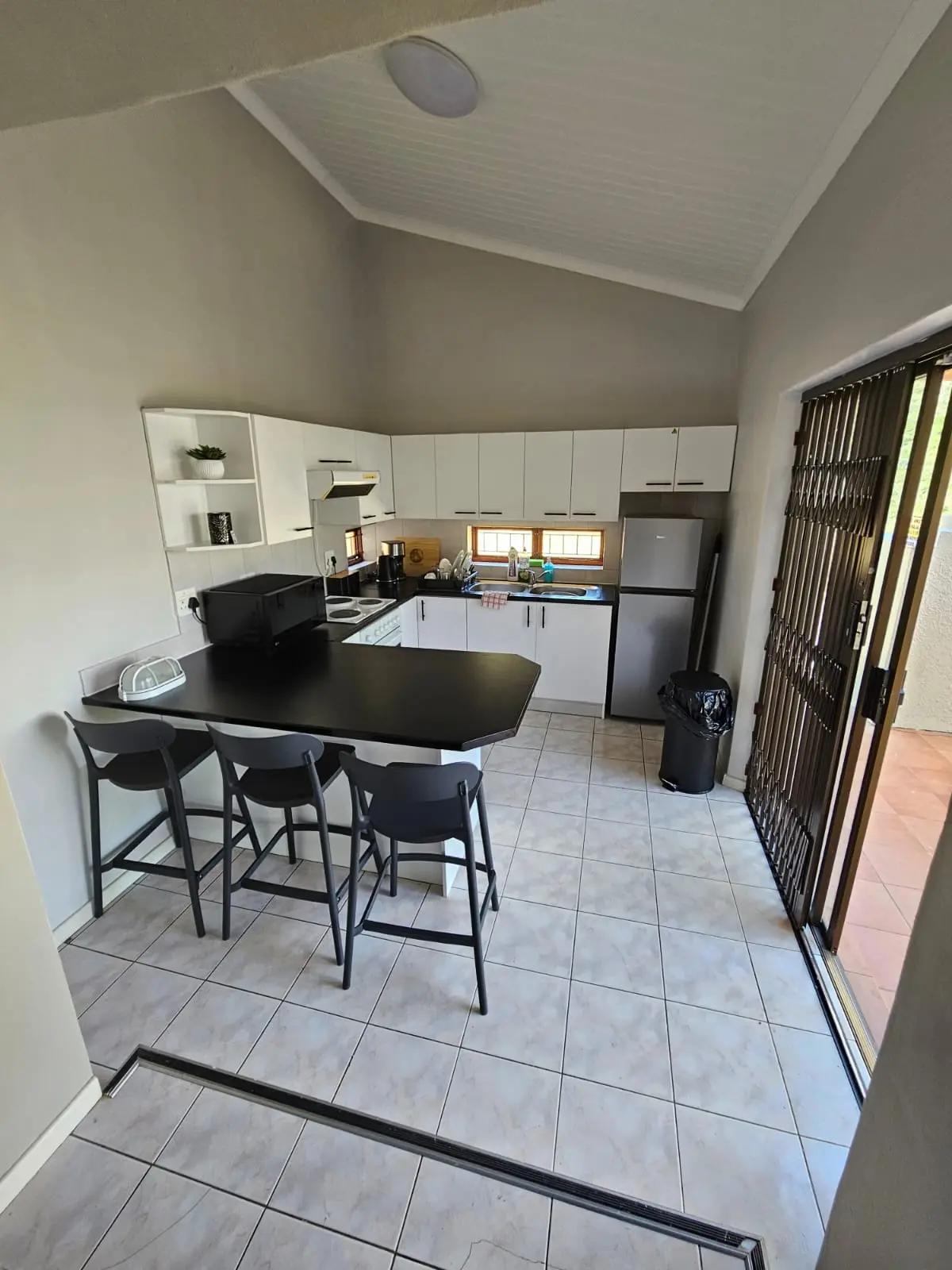 There are also three two-bedroom chalets, each sleeping up to three men. The chalets are equipped with one double bed and one bunk bed, as well as a lounge area and a bathroom with both a shower and a bath. Each chalet has a fully equipped kitchen and an outside braai facility.